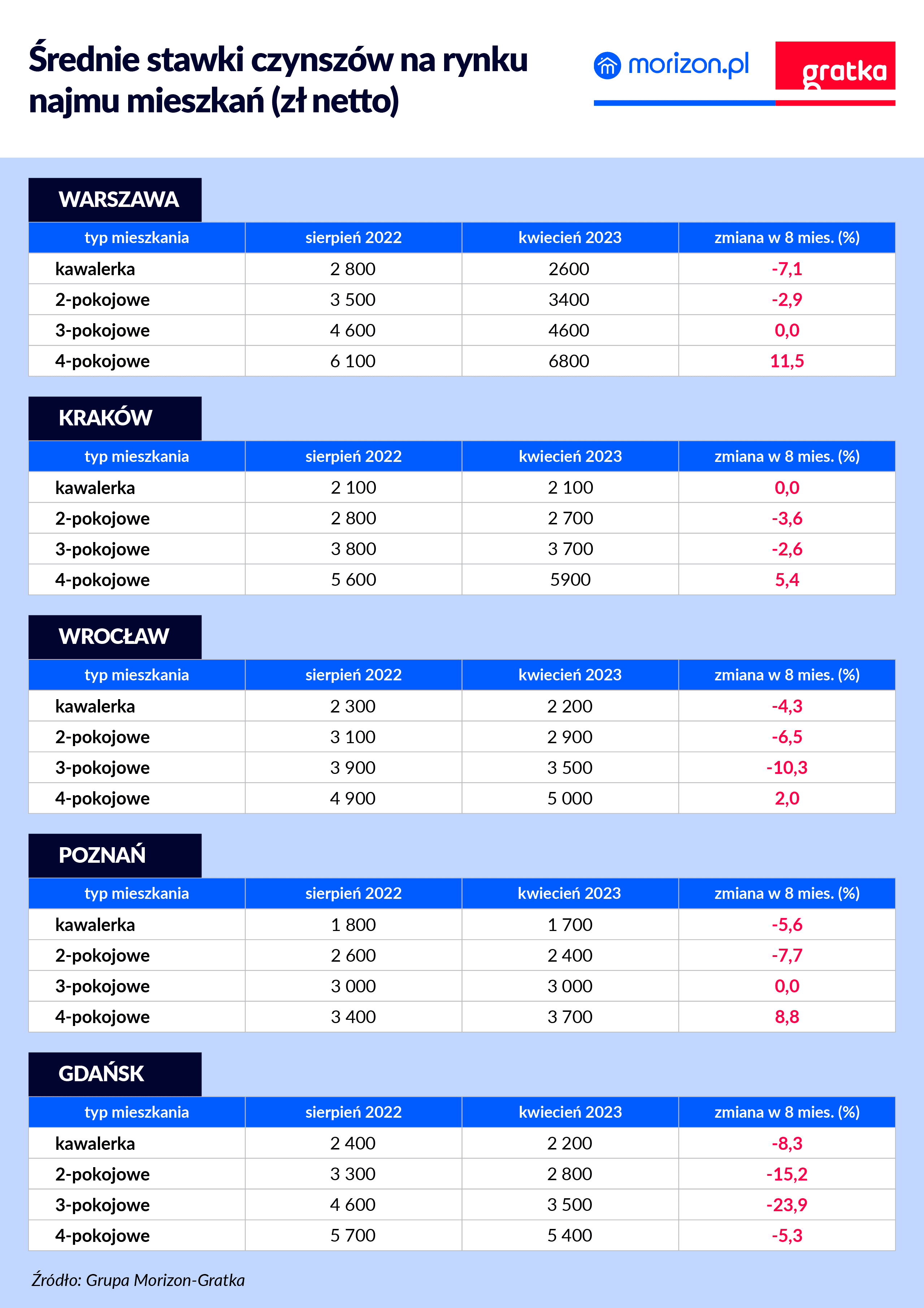 Нещодавно з’явилися нові повідомлення про рекордні орендні ставки за оренду квартир, про складнощі покупців з пошуком житла або про кастинги орендарів. Пік буму на ринку оренди припав на рубіж третього та четвертого кварталів минулого року, і наступні місяці лихоманка поступово спала. Однак мало хто передбачав, що ринок насититься настільки, що тенденція розгорнеться і на ринку оренди настане похолодання, подібне до того, що вразило ринок продажу житла минулого року. Про це пише на своєму сайті агентство нерухомості morizon.pl