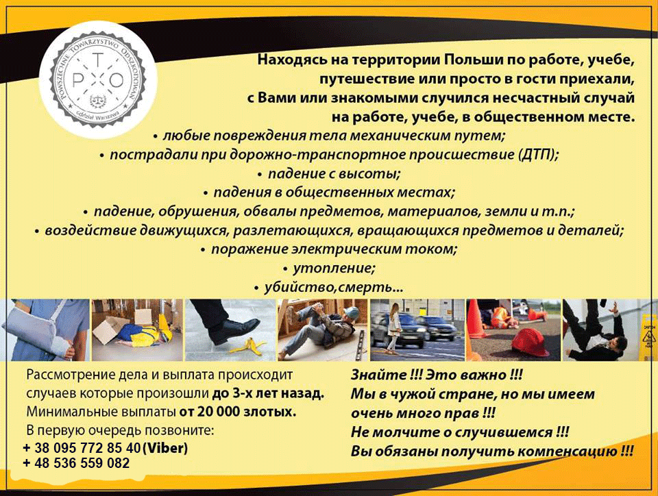 Ви знаходитесь на території Польщі по роботі, навчанню, приїхали в гості до родичів чи друзів чи просто подорожуєте і з Вами чи з вашими знайомими трапився нещасний випадок на роботі чи у громадському місці?